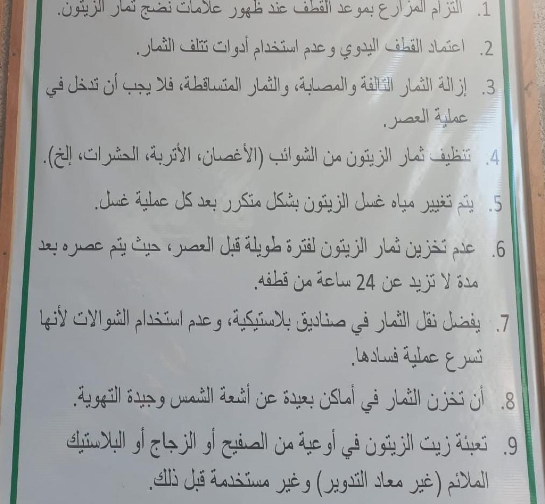 وأوضح القسم أن جولاته الميدانية تأتي في سياق الرقابة على استعداد معاصر الزيتون للموسم الجديد ومتابعة جهوزيتها الفنية.
