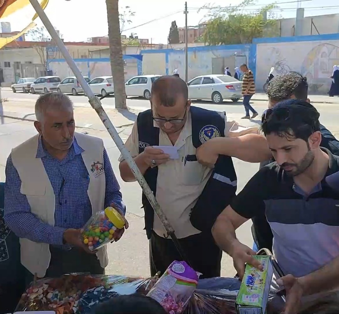 نظمت طواقم التفتيش التابعة للإدارة العامة للمكاتب الفرعية وحماية المستهلك بمكتب محافظة خان يونس في وزارة الاقتصاد بالتعاون مع مباحث التموين جولة ميدانية على الباعة المتجولين أمام المدارس.