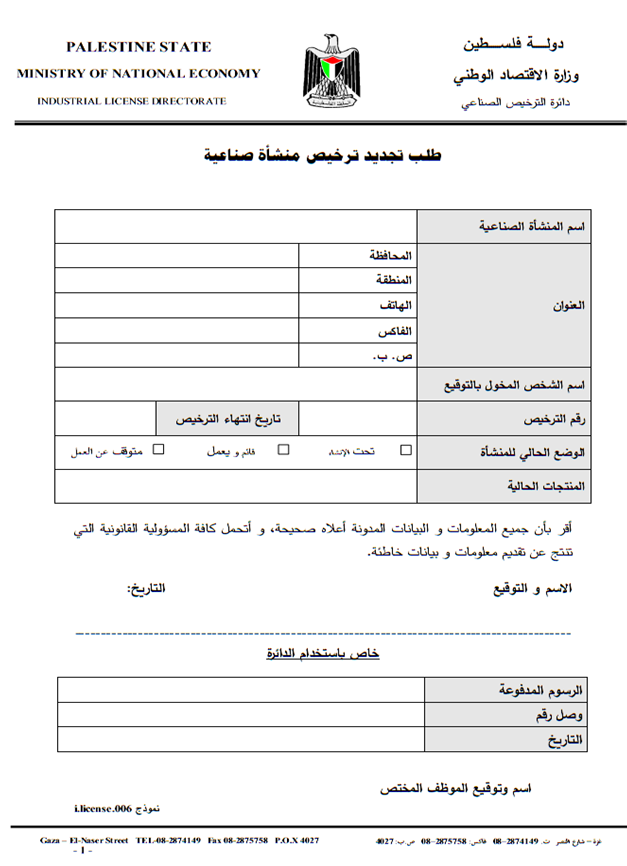 | الخدمة | تجديد رخصة تشغيل منشأة صناعية. |