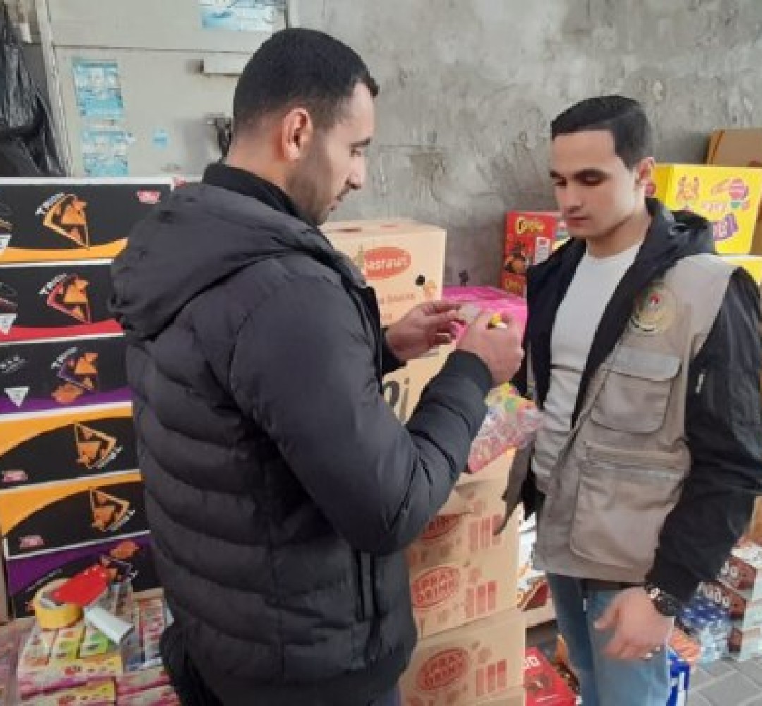 وقالت الطواقم، أنها اتلفت 480 جرام شوكولاتة بسبب انتهاء الصلاحية حسب المواصفة الفلسطينية، وكذلك اتلاف (17) علبة بسكويت بسبب انتهاء الصلاحية.
