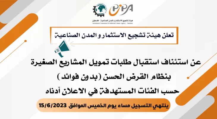 وطالبت الهيئة الراغبين بالاستفادة من قرض التمويل زيارة الموقع الالكتروني http://www.ipa.ps للاطلاع على الشروط الخاصة بالمشاريع والأوراق والمستندات المطلوبة لتقديم المشروع