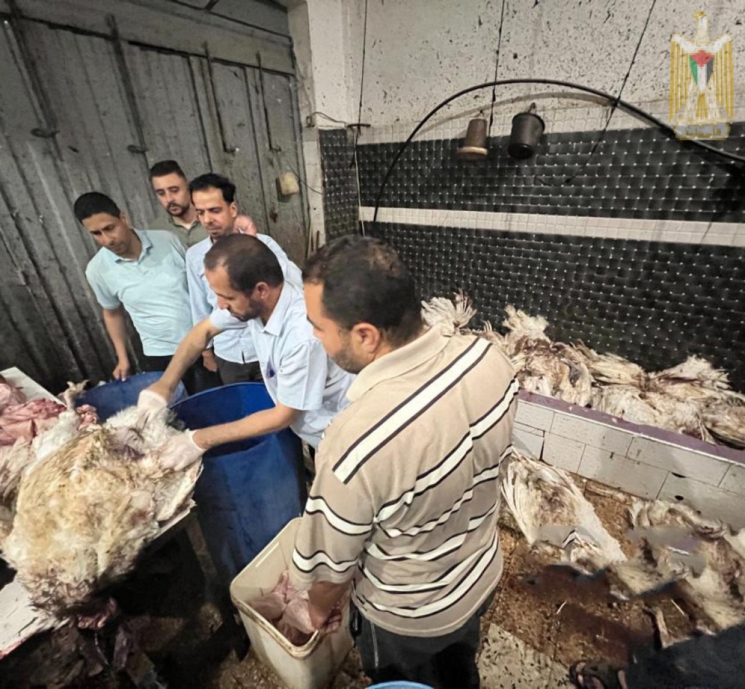 الاقتصاد تتلف كميات كبيرة من الحبش الغير صالحة للاستهلاك الادمي بخانيونس والوسطى