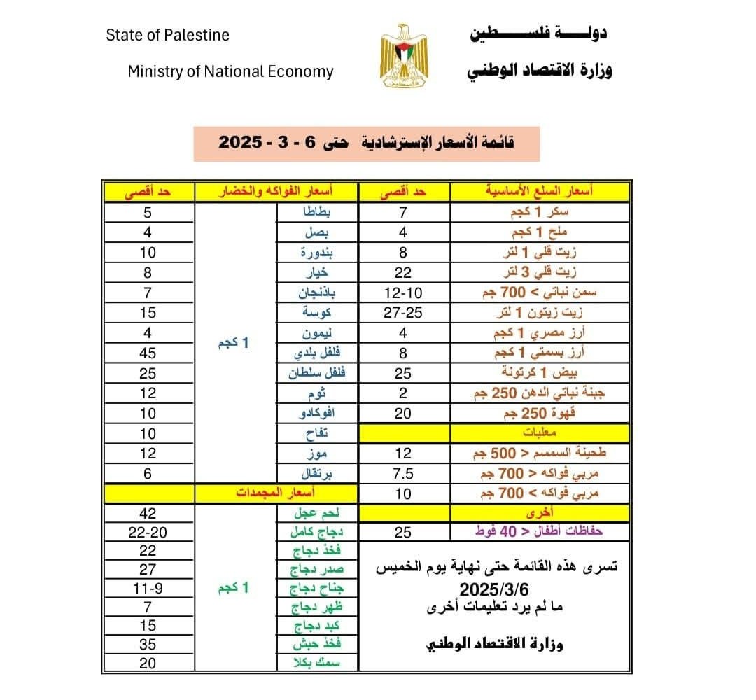 قائمة استرشادية لأسعار السلع الغذائية الأساسية